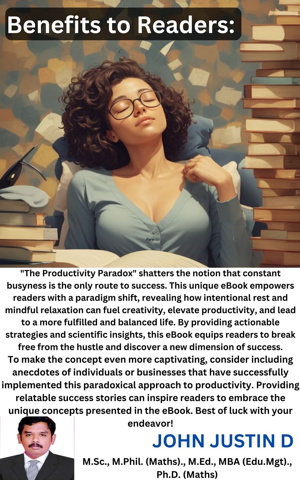 "The Productivity Paradox" challenges conventional wisdom by presenting a counterintuitive approach to achieving exceptional productivity through intentional rest. This eBook delves into the science behind the paradox, showing readers how incorporating strategic breaks, downtime, and mindful relaxation can lead to amplified creativity, sharper focus, and ultimately, remarkable accomplishments.
